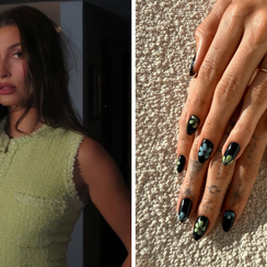 Nokti Hailey Bieber imaju tamnu bazu i cvijeće, a najzanimljiviji efekt otkrivaju tek kad nema svjetlosti