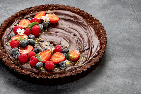 Ovaj kremasti čokoladni tart gotov je za samo pola sata i ne treba ga peći! Hrskava podloga od keksa i maslaca te boga…