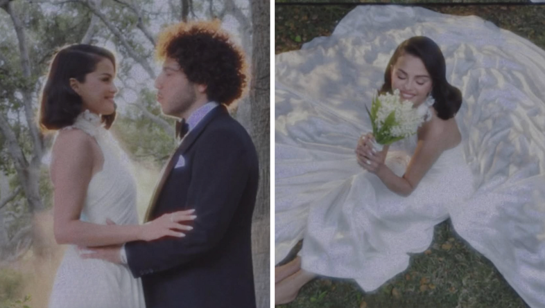 Za svoj veliki dan Selena je nosila bijelu haljinu na jedno rame, ukrašenu cvjetnim detaljima, dok je Blanco bio odjeven u klasični crni smoking s leptir-mašnom — oba komada potpisuje Ralph Lauren.